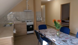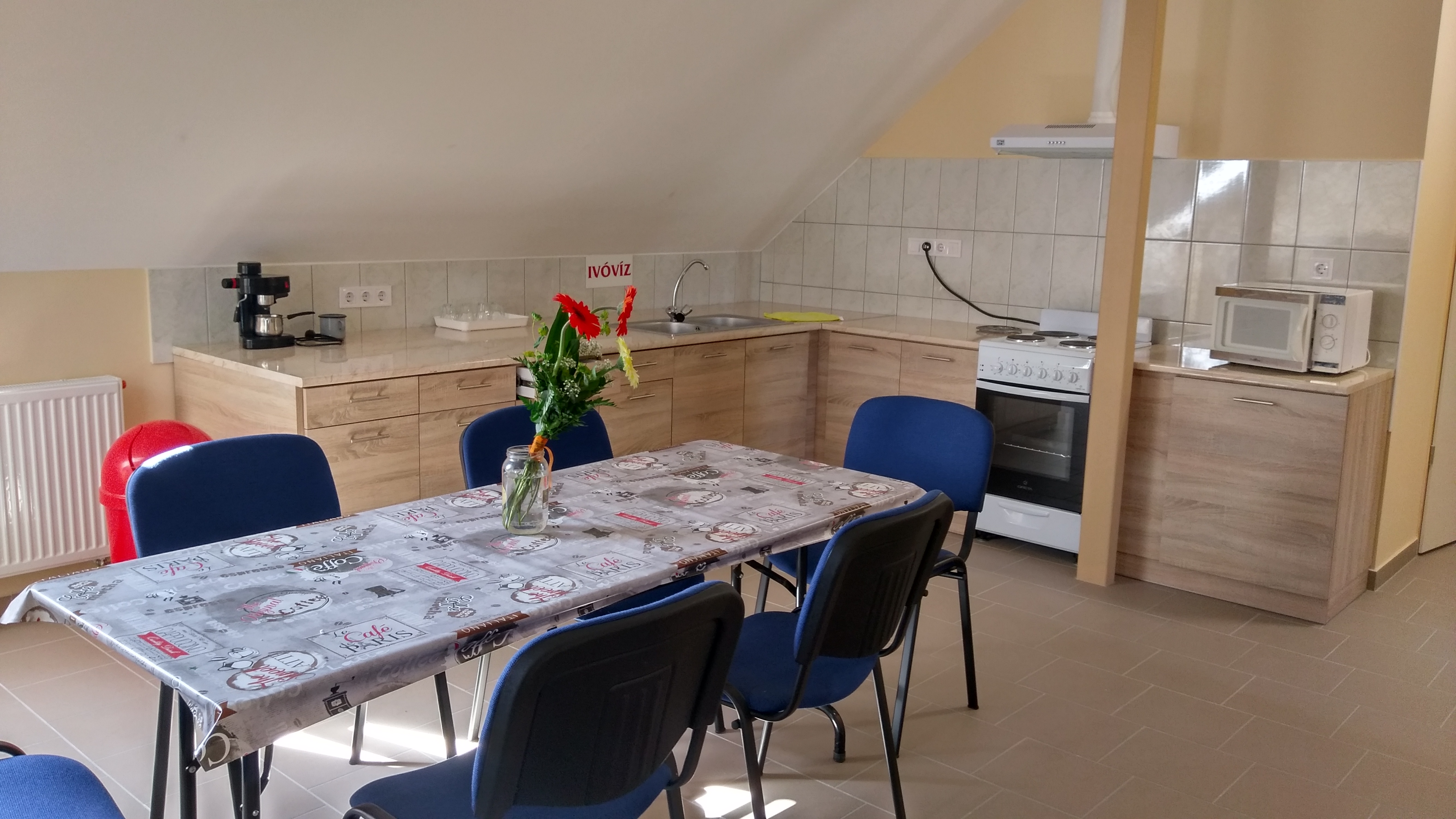 2017. júniusában került kialakításra az összesen 16 fő befogadására alkalmas szálláshelyünk. Az emeleten lévő különálló kialakítású épületrész közvetlen a földszinten található Erdősori CBA élelmiszerbolt felett helyezkedik el. Az 5 szobával bíró épületrészben minden szobához különálló fürdő rész található zuhanyzóval, mosdóval, wc-vel. Minden szobában TV és hűtő került elhelyezésre. A közös helyiségként használt konyha teljesen felszerelt, kávéfőzővel, mikrohullámú sütővel, normál elektromos sütővel és főzőlapokkal felszerelt. A szobaárban bennefoglalt szolgáltatásaink között rendszeres mosás, takarítás és ágyneműcsere valamint korlátlan wifi használat van. Igény esetén zárt parkoló áll rendelkezésre.