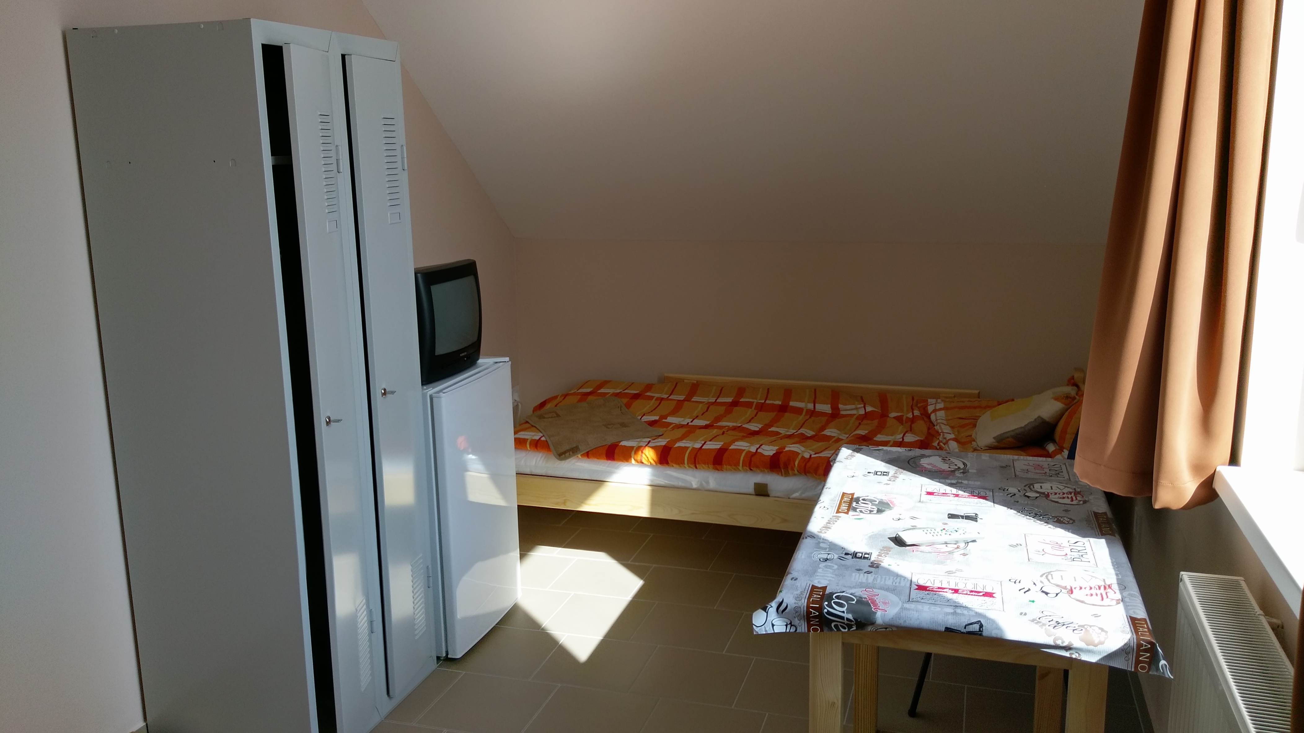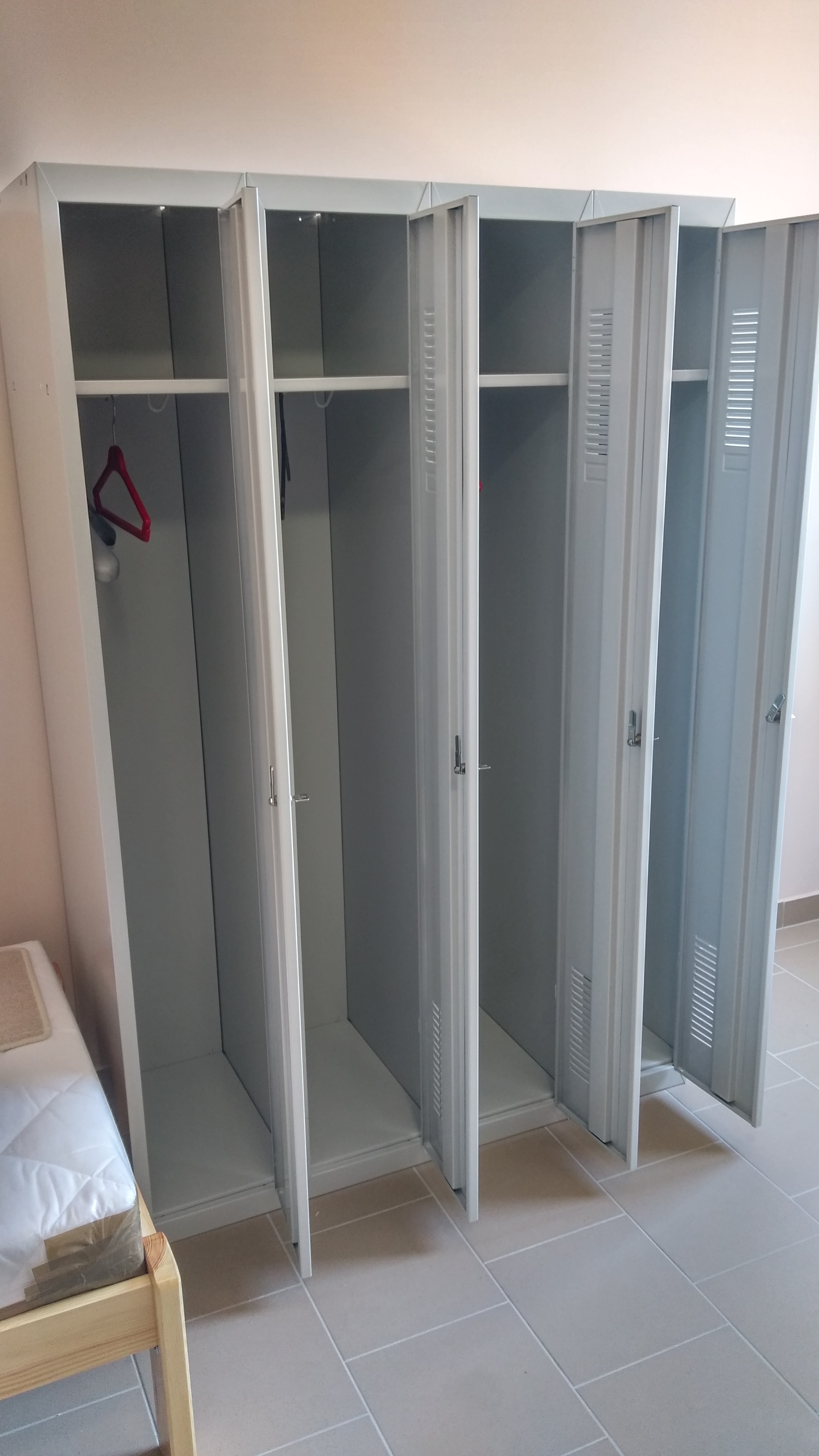 A szobákban komfortos matraccal felszerelt szimpla ágyak, zárható öltöző szekrények és bútorok várják.